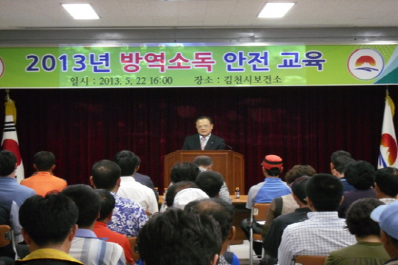 김천시는 지난 5월 22일 읍․면․동 방역담당자 및 방역소독인부 70여명을 대상으로 보건소 3층 회의실에서 방역소독안전 교육을 실시했다.
