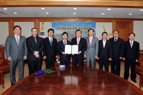 김천시(시장:박보생)는 24일에 영진전문대학 대구경북영어마을(위원장:조방제)과『영어체험학습지원 및 위탁교육 협약식』을 체결했다고 밝혔다.