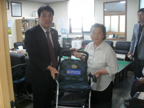 김천시 대곡동 국제로타리3630지구 김천로타리클럽(회장 김창규)은 23일 보행이 불편하신 대곡동의 저소득 어르신들에게 노인활동보조기를 전달했다.