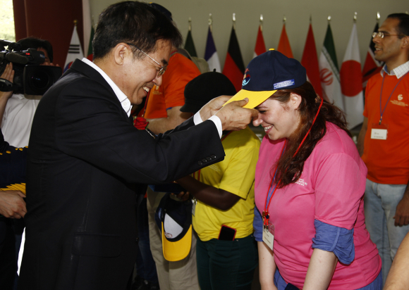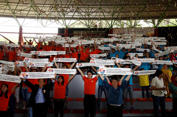 [사진설명] 26일 경주세계문화엑스포공원에서 열린 ‘이스탄불-경주세계문화엑스포 2013 해외 청년 홍보단’ 발족식에서 42개국에서 온 600여명의 유학생들이 이스탄불-경주엑스포 성공 개최를 기원하며 파이팅을 외치고 있다. |
