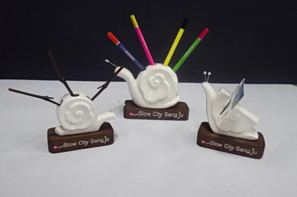 ‘느림의 행복’은 상주시가 슬로시티 국제도시로서 슬로시티 본래의 이미지 달팽이를 응용하여 여러 가지 기능으로 디자인하고 슬립 케스팅 작업으로 대량생산이 가능하며 관광기념품으로 가격이 저렴하고 상품성이 좋은 것이 높은 평가를 받았다.