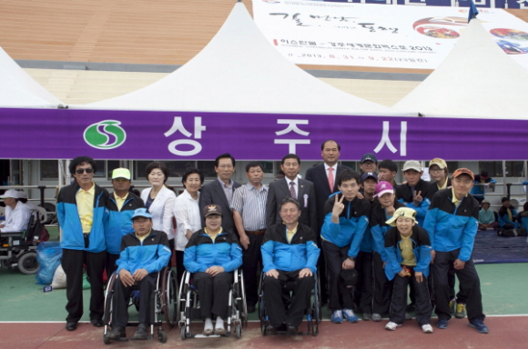 상주시의회(의장 이성규) 의원들은 5월 31일 구미종합운동장을 찾아「제15회 경상북도장애인생활체육대제전」에 참가하는 상주시 선수단과 관계자들을 격려했다.