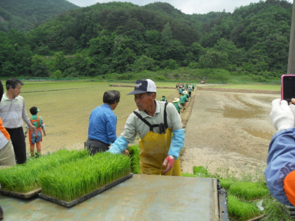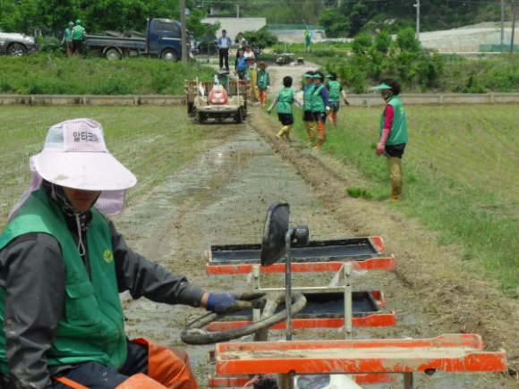 올해는 토지소유주가 고령으로 영농을 할 수 없는 휴경지 4,000여평을 임대해 벼농사를 짓기로 하고 오늘 회원 30여명과 면직원 10여명이 함께 모내기를 실시했으며, 일요일임에도 불구하고 양북면장, 권영길 시의회 부의장, 김태환 동경주농협장 등이 동참해 새마을 회원들을 격려했다.