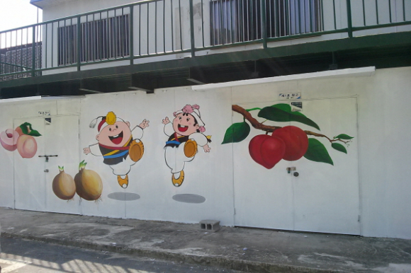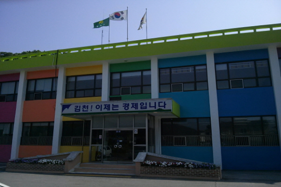 김천시 구성면 청사벽면 특산물 벽화 도색 및 면 표지석 설치