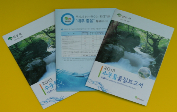 12쪽의 리플릿 형태로 발간된 이 보고서는 수돗물의 원수에서 수용가 수도꼭지까지의 생산·공급과정과 수질기준 및 수질검사결과 등에 관한 세부적인 자료가 수록돼 있다.