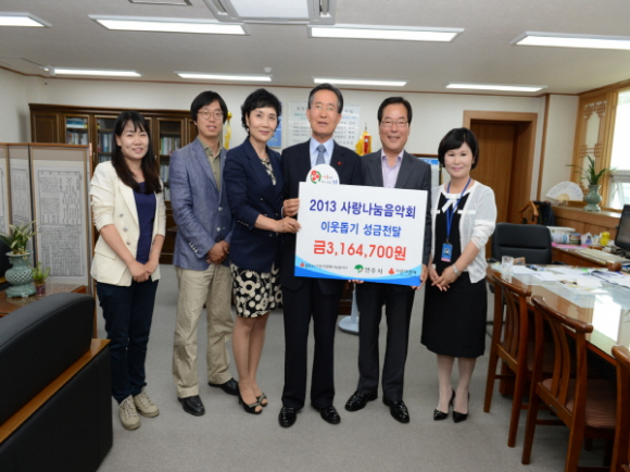 영주시 사랑의열매 나눔봉사단(단장 정옥희)에서는 2013. 6. 4 「2013 사랑나눔음악회」시 모금한 이웃돕기 성금 310만원을 사회복지기관에 기탁했다.