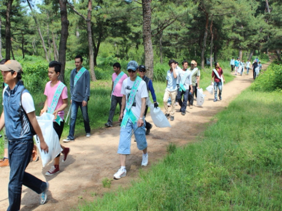 경주 남산 삼릉에 외국인 봉사단의 환경미화 손길이 닿다.