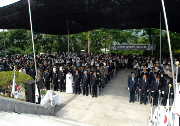 제58회 현충일 추념식이 6. 6(목) 10:00시 충혼탑에서 전국적으로 동시에 울린 추모 사이렌 소리에 맞춰 나라위해 목숨 바친 호국영령들의 희생정신을 생각하는 묵념을 시작으로 거행됐다.