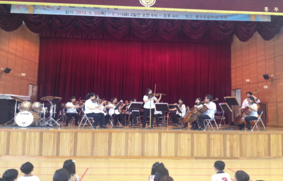 흥무초등학교(교장 이건호)에서는 6월 5일(수) 11시에 교내 강당에서 ‘경북도립교향악단’의 찾아가는 음악회가 열렸다. 이날 음악회에는 3학년에서 6학년까지 372명의 학생이 관람을 했다.
