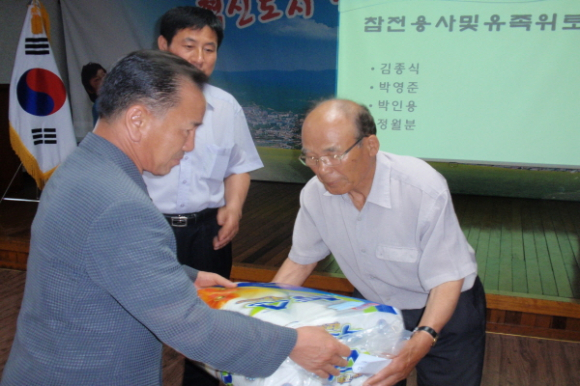 김천시 평화남산동 방위협의회(회장 라기문)는 6월 호국보훈의 달을 맞아 지난 6월 5알 관내에 거주하고 있는 6.25참전용사 4명을 방위협의회 월례회에 초청하여 상품권, 휴지, 라면 등(60만원상당)을 전달하고 격려했다.