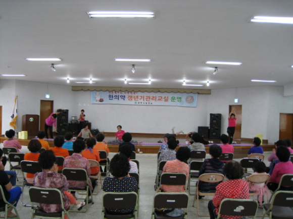 특히, 이번 한의약 갱년기관리교실은 여성 호르몬의 분비가 체내 필요량에 미치지 못하여 여러 가지 신체적변화가 일어나는데, 이러한 일련의 정신적 신체적 무력감을 잘 극복하기위하여 갱년기 우울증 관리, 사상체질, 한방식이 및 양생, 기공체조 등의 프로그램을 실시하였으며, 그동안 배운 체조 동작 중 가장 자신 있는 동작을 발표하는 시간도 가졌다.