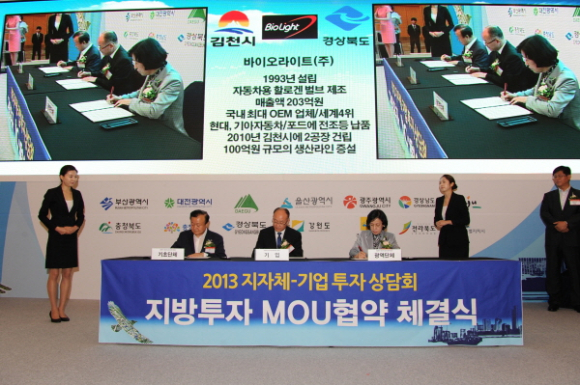 MOU체결식은 산업통상자원부가 주최 한국산업단지공단이 주관하는「2013 지자체-기업 투자상담회」의 주요행사로 이 행사는 비수도권 지역의 투자활성화를 위해 개최됐다.