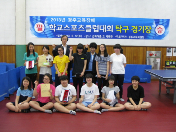 2013년 교육장배 학교스포츠클럽대회 종목별 우승한 팀에게는 우승 트로피와 상장 상품권 시상에 우승한 종목별 팀에게는 9월에 있는 경상북도 학교스포츠클럽대회 경주시 대표로 참가할 자격이 주어졌으며 출전한 모든 선수들에게는 학교에서 틈틈이 연마한 실력을 유감없이 발휘할 수 있도록 승패에 관계없이 전원 경기를 하도록 진행하여 참가한 선수와 지도 선생님에게 좋은 평을 받았다.