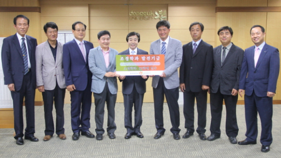 동국대학교 경주캠퍼스(총장 이계영) 조경학과 동문들이 지난 14일 오후 3시 교내 총장실에서 조경학과 발전기금으로 1천만원을 쾌척했다.