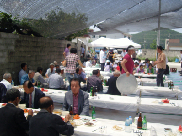 어일 본동 경로당은 2011년 8월에 완공되었지만 양북 보건지소 신축으로 인해 건물을 임대해 주는 등 내부 사정으로 이날 준공식을 가지게 되었다.