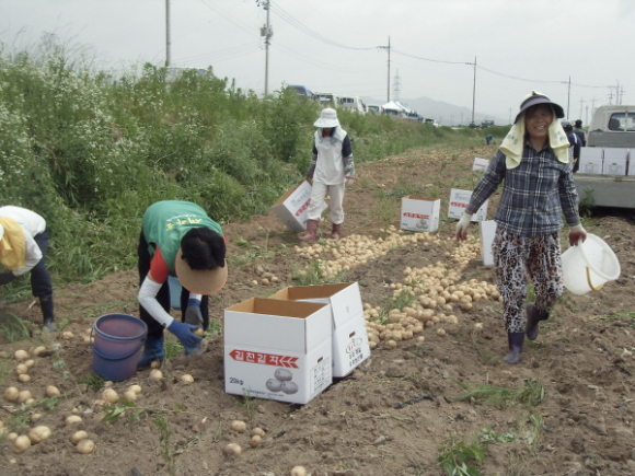 김천시 개령면새마을협의회 휴경지 감자 수확