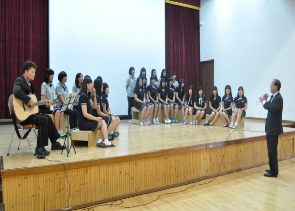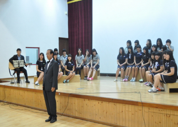 5월 20일(월) 3학년을 시작으로 하여, 6월 17일(2학년), 7월 8일(1학년, 예정) 등 251명의 전교생 모두가 함께하는 교내『행복한 합창조회』를 전반기에 3회를 실시하며, 학생들에게 많은 호응을 받고 있다.