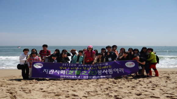 장애인복지관 지적장애인 청소년 9명과 경주여중 학생들 10명으로 구성된 지란지화(좋은 벗을 사귀면 자연히 감화된다) 봉사동아리는 장애‧비장애인이 함께하는 통합 활동을 위해 매월 넷째 주 토요일마다 정기적인 만남을 가지고 있다.
