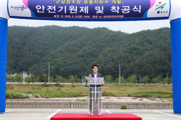 울진군(군수 임광원)은 지역주민의 오랜 숙원사업인‘울진지방상수도 확장사업’관련 주민 피해가 없는 상수도 취수원개발 사업에 대한 안전기원제 및 착공식을 21일 근남면 성류굴 앞에서 개최했다.