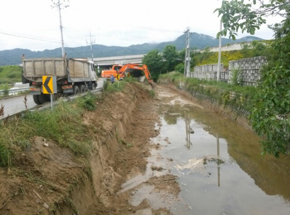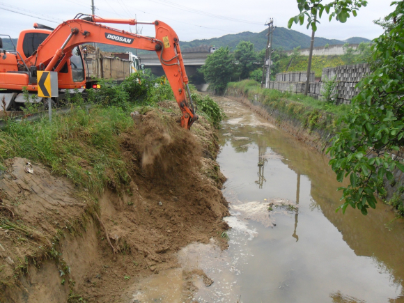 성주읍 대황리 소재 ㈜가천산업사(대표 신용근)는 18일, 19일 자신의 공장 앞에 흐르는 소하천(대황천)을 직접 중장비[굴삭기 1대(0.6㎥), 15t 덤프 2대]를 이용해 하천 쓰레기, 수목 및 하상에 쌓여있는 토사를 정비해 우수기 시 있을 수 있는 재해에 대해 스스로 대비했다.