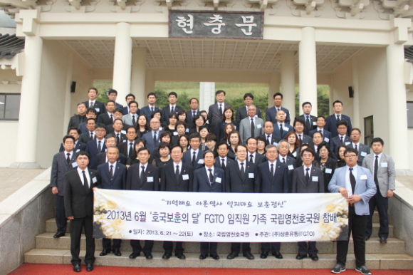 |  | | | ⓒ GBN 경북방송 | | 국립영천호국원(원장 노원근)에서는 21일(금) 11:00 6월 호국보훈의 달을 맞아 대구지방검찰청 최재경검사장과 직원들이 영천호국원을 방문했으며, 오후에는 (주)상훈유통 이현옥대표이사와 직원 70여 명이 방문해 현충탑 참배를 한 후, 호국특별 시화전 관람, 시설견학 등의 뜻 깊은 시간을 가졌다.