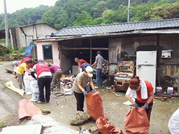 지난 23일 일요일 경주마음사랑봉사단(회장:한국동, 회원26명)에서는 산내면의 한 장애인부부의 집을 찾아 집안을 가득 메운 쓰레기를 치웠다. 이날 치운 쓰레기량은 1톤 트럭 한 차 분량이다. 악취와 엄청난 양으로 힘든 작업이었지만, 회원들은 무기력한 환경에서 벗어나 조금이라도 깨끗한 환경에서 행복해 할 장애인부부의 해맑은 미소를 떠올리며 신바람을 냈다.
