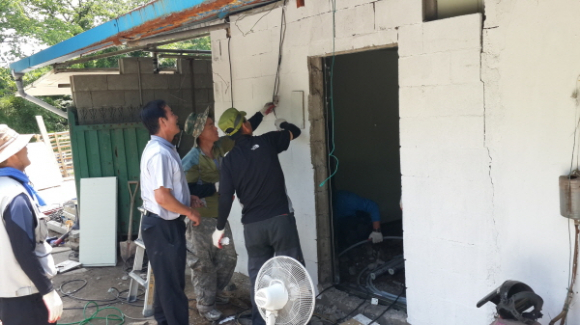 또 열악한 주거환경 개선을 위해 경주집수리봉사회(회장:박종배, 회원20명)에 연계해 욕실을 만들어 주는 작업과 함께 구멍이 뚫려있는 지붕과 노후한 벽체도 보수해 주었다.