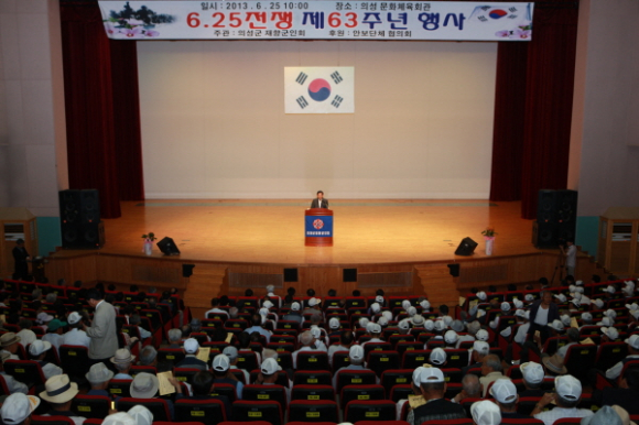 |  | | | ⓒ GBN 경북방송 | | 의성군재향군인회(명예회장 의성군수 김복규 , 회장 주성덕)에서는 25(화) 10시부터 의성문화회관에서 6.25참전용사, 유가족, 보훈ㆍ안보단체 회원 및 주민 800여명이 참석한 가운데 경건한 마음으로 6.25전쟁 제63주년 행사를 가졌다.