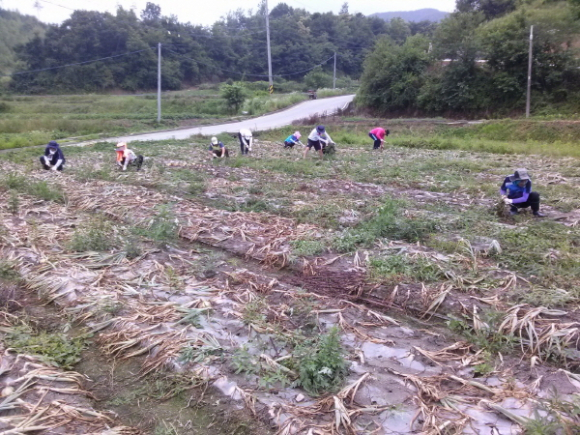 김천시 평화남산동 주민센터(동장 박명수)직원 12명은 지난 6월 26일 증산면 동안리 소재 일손부족으로 고충을 겪고 있는 한 농가의 양파밭(4,297㎡)을 찾아가 수확을 앞둔 양파 순자르기 작업에 구슬땀을 흘렸다.