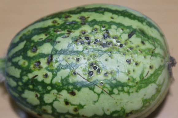 수박과일썩음병은 조기에 병을 방제할 경우 미발생 포장 대비 80% 정도 수확이 가능하지만 방제를 하지 않을 경우 거의 수확이 불가능할 정도로 수박에서는 무서운 병이다. 이 병은 2010년을 전후하여 우리나라에 유입되기 시작한 병으로 이병 종자나 잔재물에 의해 1차 전염이 되고 접목이나 곁순 관리 작업 과정에서 2차 전염된다. 특히 재배 포장내에서는 비바람을 동반한 강한 강우시 급격하게 건전주로 전염이 되는 병으로 장마가 시작되기 전 철저하게 방제를 하여야 이후 병 발생을 감소시킬 수 있다.