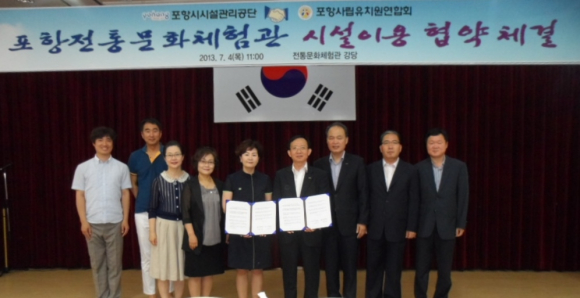 이날 오전 11시에 전통문화체험관에서 김완용 포항시시설관리공단 이사장과 김기임 포항사립유치원연합회 회장 등 관계자 10여명이 참석한 가운데 유치원생들의 체험활동 시 전통문화체험관의 체험 프로그램을 적극 이용하고 지원하는 상호 교류 증진을 위한 협약서에 서명했다.
