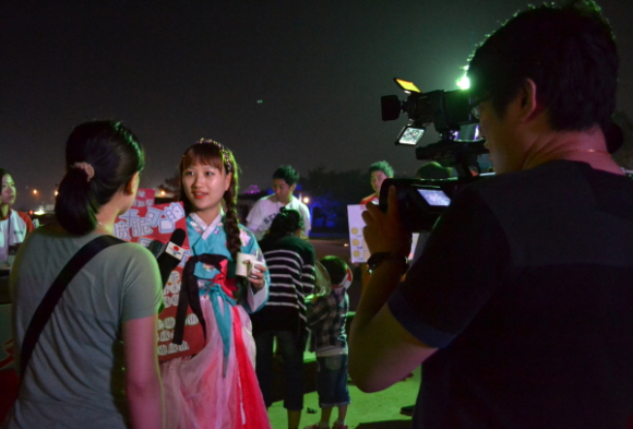 사진 2매(사진1-신라방 행사 시 중국 현지 언론에서 취재하는 모습, 사진2-단체 기념 사진) |