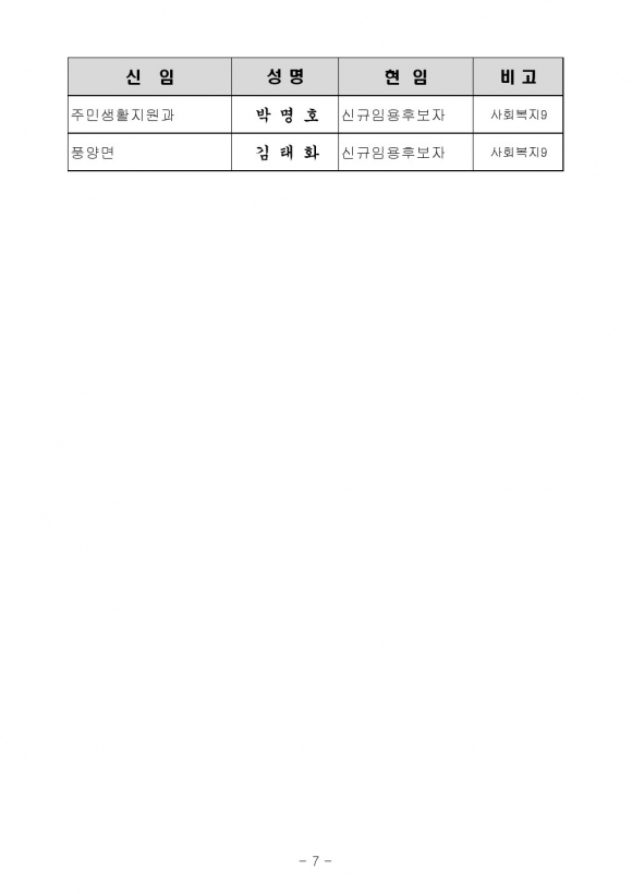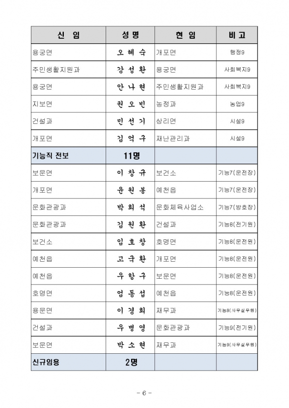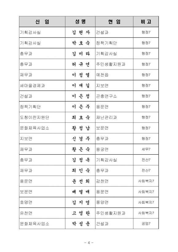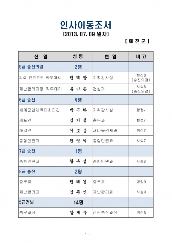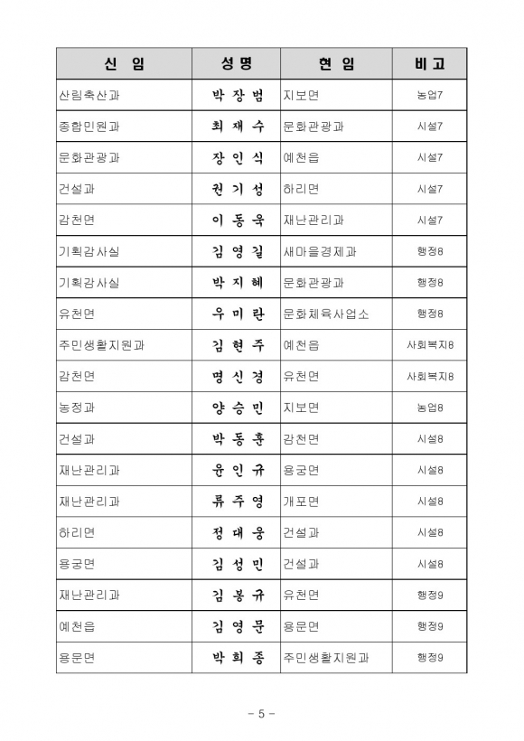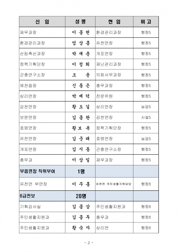 7월 8일자 예천군 인사이동