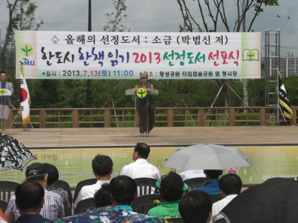 이날 행사는 시민과 새마을지도자 1,000여명이 참석한 가운데 벼룩장터와 『한 도시 한 책읽기 2013 선정도서 선포식』을 병행 실시해 그 의미를 더했다.