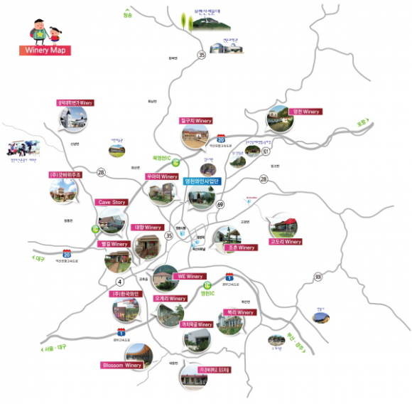 포도 재배 면적이 전국의 14%를 차지해 대한민국 최대 포도주산지인 영천은 년 25만병의 와인을 생산하는 국내 최대 와인생산지역이 되었고 2010년부터는 본격적인 와인투어를 실시해 관광‧문화산업으로의 발전을 시도하고 있다.