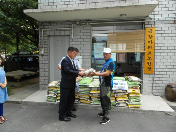 이날 행사에는 동부건설(주) 직원들이 찜통더위도 잊은 채 백미 10kg 100포(250만원 상당)를 사회 취약계층이 입주한 금강아파트 전세대에 전달하며, 이웃사랑 나누기를 몸소 실천했다.