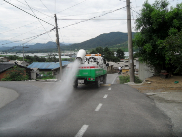 7월 전국 일제소독의 날을 기해 초전면 용봉리 성신농장을 비롯한 방역소독의 취약지를 대상으로 보유중인 방역차량을 이용해 일제 소독을 실시했으며, 또한 AI 감염 방지 및 차단방역의 중요성을 홍보하기 위해 재래닭 사육농가와 성주읍 재래시장 가금 판매상인에게 소독 및 약품을 배부했다.
