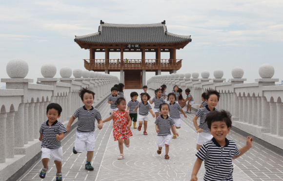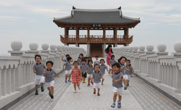 17일 영일대해수욕장에 나들이 온 어린이들이 영일대 누각에서 즐거운 시간을 보내고 있다.