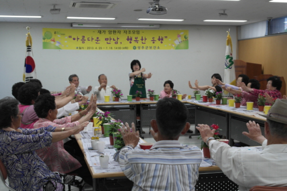 암환자 자조모임은 신체적 정신적으로 고통을 겪고 있는 환자들에게 투병의욕을 고취시키고 재활의지를 북돋우기 위한 사업으로 상호지지 및 치료순응도를 향상시키며 용기와 희망을 주는데 주안점을 두고 있다. 자조교실은 웃음치료, 원예치료, 발건강관리, 치유음식 등 다양한 주제로 운영해 참석자들에게 웃음과 활력을 제공했으며 호응이 매우 좋았다. 한편 보건소에서는, 현재 등록 관리하고 있는 280여명의 환자들에게 통증완화제 및 영양제, 아로마 방향제 등을 공급하고 있으며, 호스피스전담간호사가 환자의 가정을 주기적으로 방문해 의료서비스를 제공하고 있다.