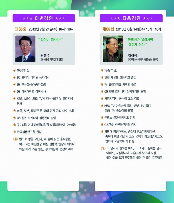 오는 24일 오후 4시 시청 알천홀에서 처음 열리는 제 65회 화백포럼은 ‘밥상이 의사다’를 주제로 허봉수 EBM통합의학센터 원장의 강의가 진행된다. 허봉수 원장은 ‘내 몸에 맞는 음식이 바로 보약‘이라는 키워드로 경주시민들을 위한 강의를 진행 할 예정이다.
