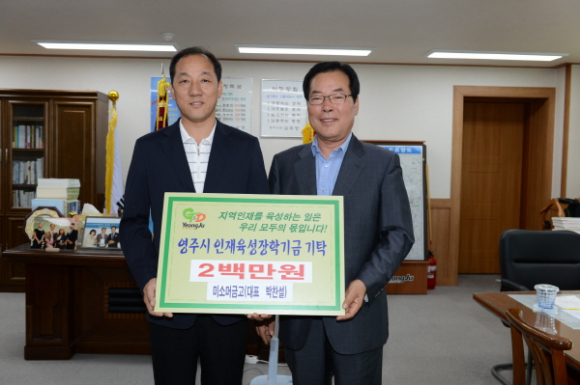 영주시“미소머금고(대표 박찬설)”인재육성장학금으로 2백만원 기탁