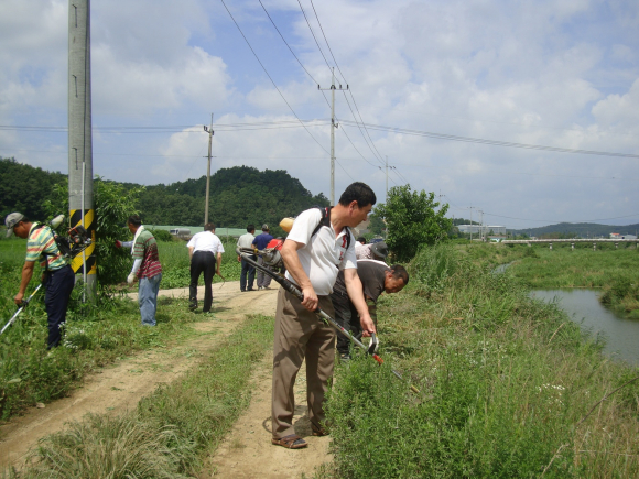 광역친환경농업단지 조성사업으로 추진하고 있는 영천시 농축산순환자원화센터 신축공사 부지 주변 환경정비에 지역 양돈농가들이 힘을 합해 무더위에 청량제가 되고 있다.
