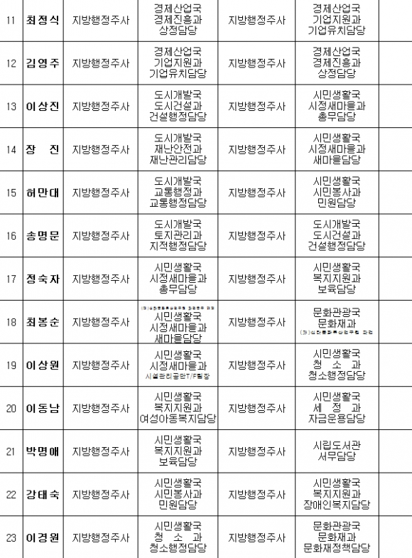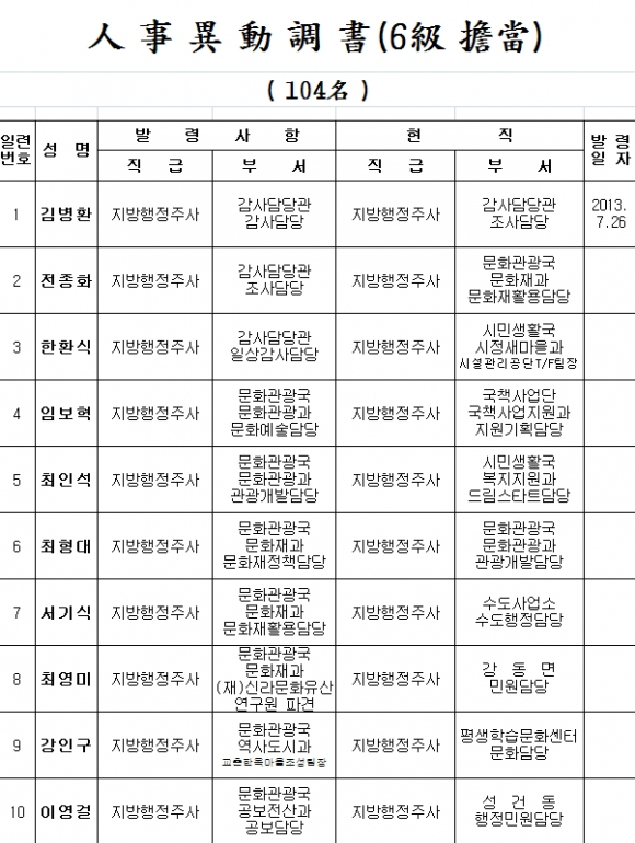 경주시) 인사발령(6급이하. 7/26일자)