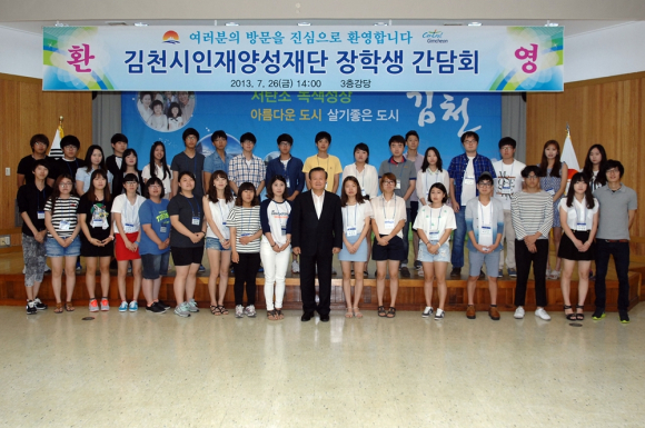 이날 간담회를 마치고 장학생들은 혁신도시 건설 현장, 부항댐 조성 현장 등을 견학했다. 한편, 김천시인재양성재단은 2008년 12월에 설립된 이래 지역의 우수한 인재양성과 교육명품도시 조성을 위해 많은 노력을 해왔으며, 2009년도에 128명에게 1억9천8백만원, 2010년도에 127명에게 1억9천1백만원, 2011년도에 130명에게 1억9천1백만원, 2012년도에 126명에게 1억8천9백만원, 2013년도에 167명에게 2억3천8백만원의 장학금을 각각 지급했다. |