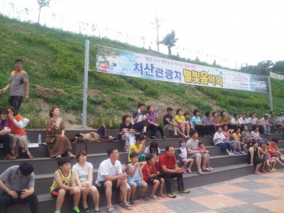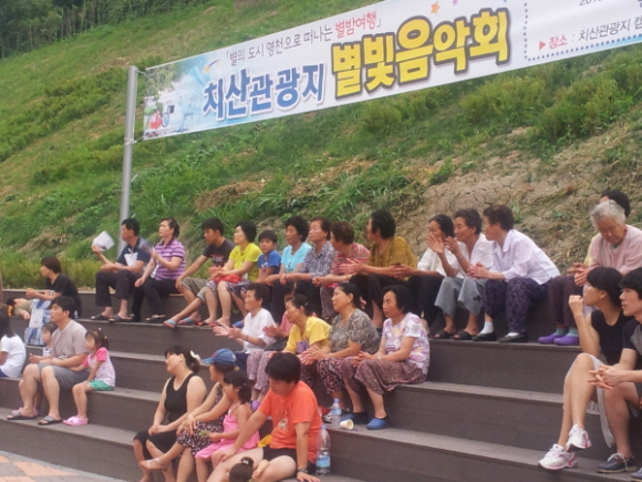 28일 저녁 7시 신녕면 치산리 소재 영천치산관광지캠핑장에서도 지역예술동아리인 ‘개미와 노래하는 배짱이들’의 별빛음악회가 열려 성황을 이뤘다. 치산캠핑장 이용객과 계곡을 찾은 관광객, 지역주민 등 100여 명이 팔공산의 아름다운 풍광과 치산계곡의 시원한 밤공기 속에서 7080가요와 ROCK공연, 섹소폰, 하모니카, 오카리나 연주 등을 감상하며 아름다운 여름밤의 추억을 만들었다.
