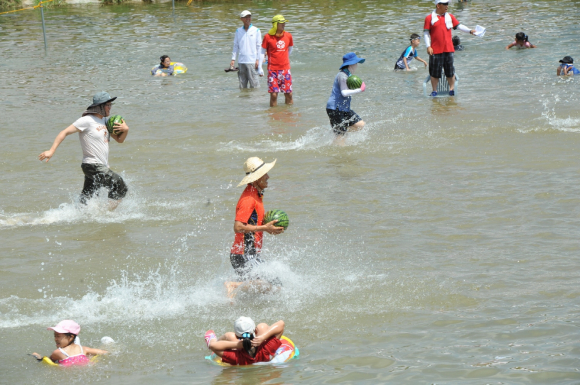 특히 축제의 백미인 수박 띄우기와 맨손 물고기 잡이는 성인 만원, 청소년 5천원으로 축제장에서 유일하게 유료로 운영하는 이벤트로 물놀이와 함께 수박과 직접 잡은 물고기를 가져갈 수 있는 행운을 얻을 수 있어 체험비가 아깝지 않다.