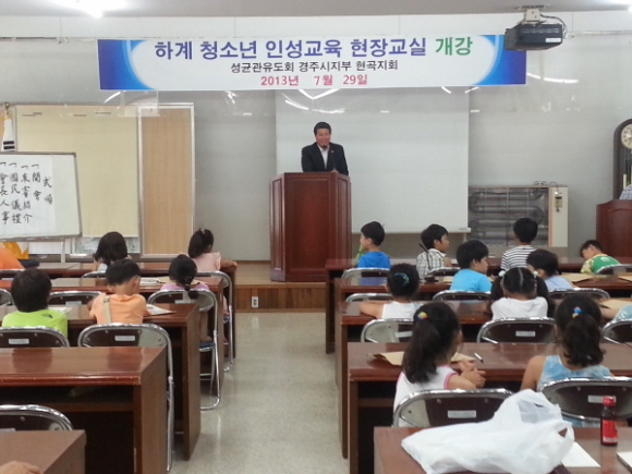 성균관유도회경주지부현곡지회(지회장 이동영)는 29일 오전 11시 면사무소 회의실에서 2013년도 하계 「청소년 인성교육 현장교실」을 개강했다.