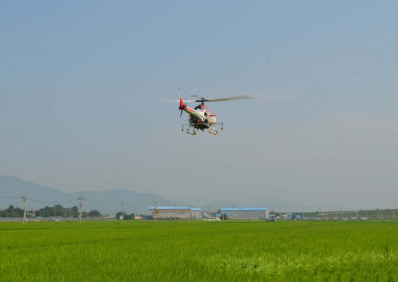 경주시농업기술센터(소장 이태현)는 농촌인구의 노령화와 노동력 부족을 해결하기 위해 무인헬기를 도입해 지난 7일, 안강, 외동, 강동 등 170ha에 대해 벼 병해충 1차 공동 방제를 실시했다.