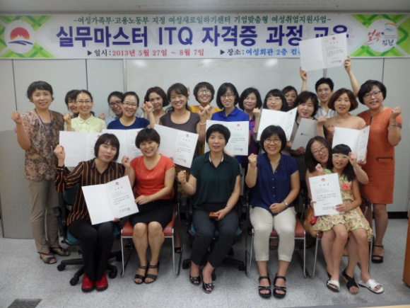 이번 교육과정에는 컴퓨터에 대한 지식이 없는 여성이 참여를 많이해 지난 7월 13일 1차 시험(한글엑셀, 파워포인트)에 응시한 21명 모두 합격하는 영광을 누렸으며, 8월 13일 2차 시험을 앞두고 있다. 2차 시험에도 100% 합격을 위하여 마지막까지 최선을 다하고 있다.