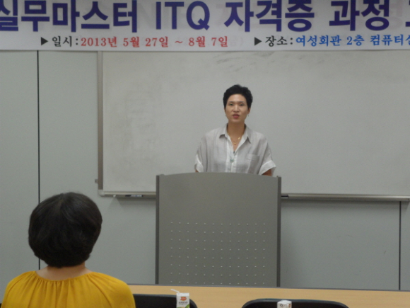 김천시종합사회복지관 여성새로일하기센터에서 실시하는 ‘실무마스터 ITQ자격증과정’은 결혼ㆍ임신ㆍ출산 등으로 경력이 단절된 여성들을 대상으로 기업맞춤형 직업훈련교육을 위해 5월25일 개강하여 8월7일까지 매주4회(월, 화, 수, 목) 총 42회 과정으로 진행됐다.